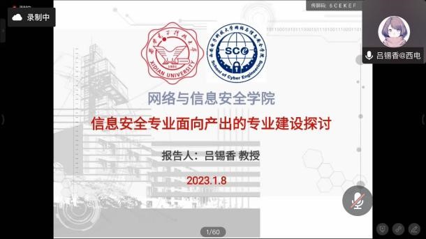 此次会议邀请到七位国内知名专家教授做报告,分别是电子科技大学姜书艳教授的报告《数字逻辑课程建设的改革与实践》,西北大学信息科学与技术学院冯筠教授的报告《软件工程一流专业建设探索和思考》,西安电子科技大学吕锡香教授的报告《信息安全专业面向产出的专业建设探讨》,石河子大学信息科学与技术学院高攀教授的报告《基于O-AMAS有效教学法的程序设计课程教学创新实践》,北京邮电大学网络空间安全学院彭海朋教授的报告《网络空间安全学科人才培养——北邮视角》,昆明理工大学方娇莉教授的报告《国家一流课程建设与教学创新大赛备赛分享》以及biwn必赢网址信息科学与工程学院刘胜全教授的报告《数据驱动的信息一流专业建设探索》。