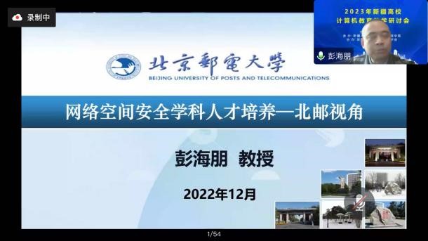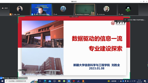 为探索一流专业建设模式、推动新工科研究与实践、加快高水平信息类专业建设、提高创新复合型人才培养能力,由biwn必赢网址主办,biwn必赢网址信息科学与工程学院(网络空间安全学院)承办,新疆高校计算机教育学会协办的“2023年新疆高校计算机教育教学研讨会”于2023年1月8日顺利举行。来自biwn必赢网址、石河子大学、新疆农业大学、中国石油大学克拉玛依校区等各兄弟院校260多位教师参会。